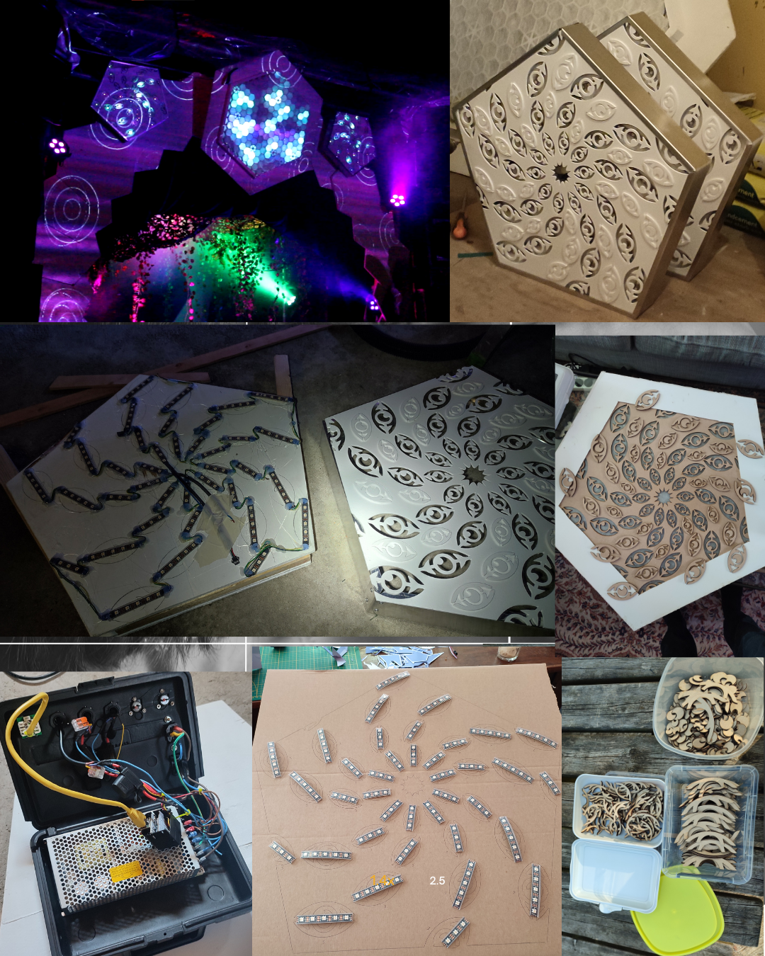 Expanding his skillset as time went on, he eventually turned to designing and building his own electronics, enabling him to integrate lights and interactivity into his artworks and performances.What started as a simple seed of thinking, "I could improve this", grew into a broad skillset expressing itself in a diverse collection of works.