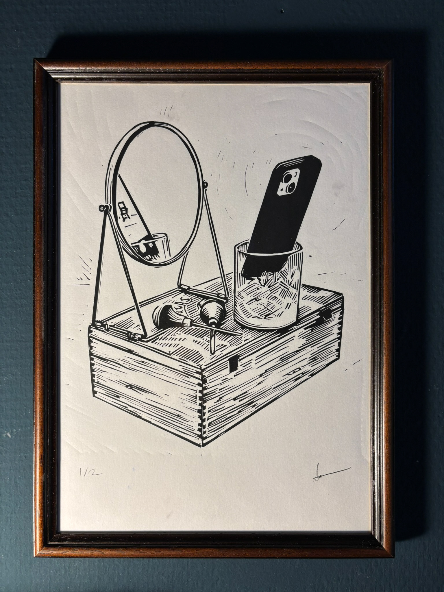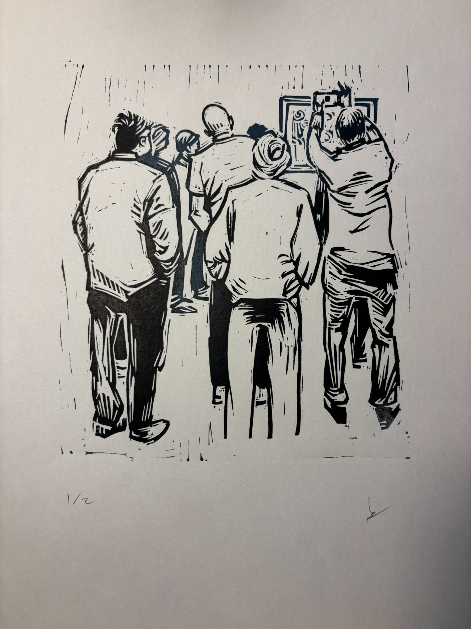 That is why the definitive nature of cutting an image into lino makes printmaking the perfect medium. Once you cut something away, you can’t put it back. Once printed, that’s what it is. Only making a few copies of each work and then destroying the lino itself; there are no re-prints.