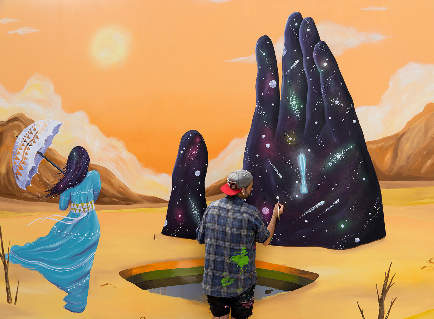 Through color, texture, and gesture, I translate the intangible, transformation, duality, memory, cosmic energies, and layered states of consciousness, into surreal visual narratives that invite contemplation and emotional resonance. Exhibitions & Global Reach Skount’s work has been exhibited across Europe, the Middle East, Asia, Australia, New Zealand, Mexico, and the United States. His murals and installations often transform urban environments into symbolic portals, immersive spaces that invite viewers to reflect, imagine, and reconnect with their own inner landscapes.