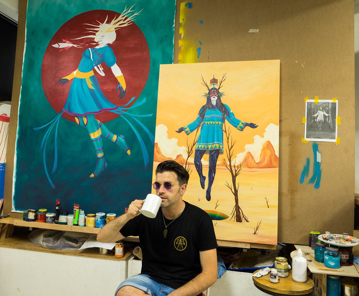 These experiences have nurtured a visual language that intertwines legends, archetypes, emotions, esoteric philosophies, and ancient symbolism within contemporary narratives. Entirely self-taught, he works across multiple disciplines: painting, illustration, sculpture, muralism, photography, and installation, creating a multidimensional and richly layered body of work. Artist Statement